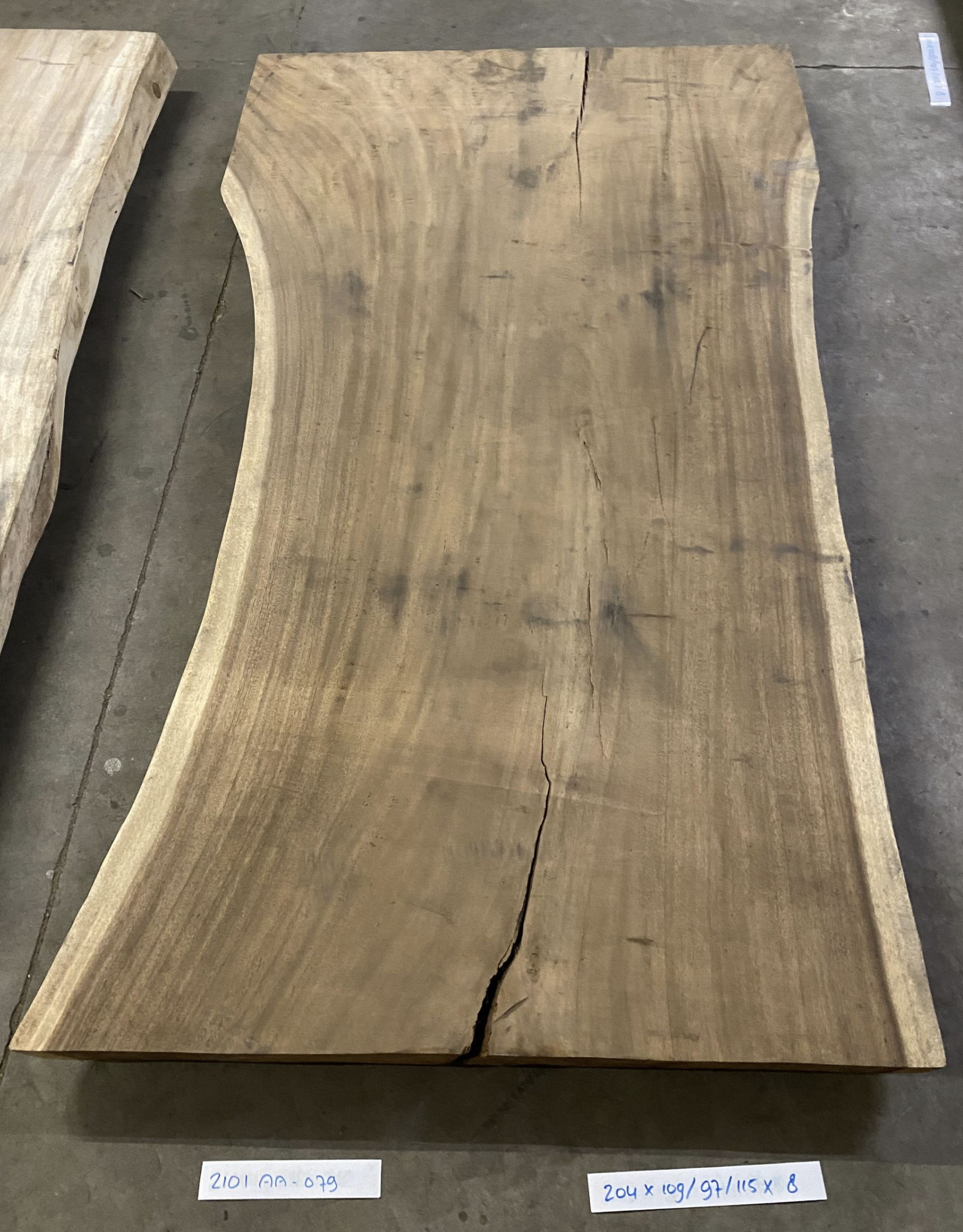 Het blad is volledig uit één stuk hout vervaardigd (een plak van de boom), wat zorgt voor een authentieke, natuurlijke uitstraling. Het blad op de foto is nog onbehandeld. Na het schuren en behandelen komen de unieke houttekeningen nog mooier naar voren, waardoor het blad nóg meer tot leven komt.