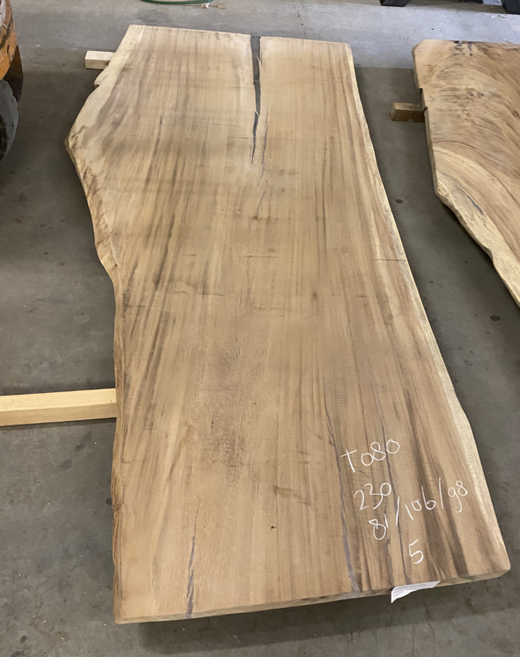 Het blad is volledig uit één stuk hout vervaardigd (een plak van de boom), wat zorgt voor een authentieke, natuurlijke uitstraling. Het blad op de foto is nog onbehandeld. Na het schuren en behandelen komen de unieke houttekeningen nog mooier naar voren, waardoor het blad nóg meer tot leven komt.