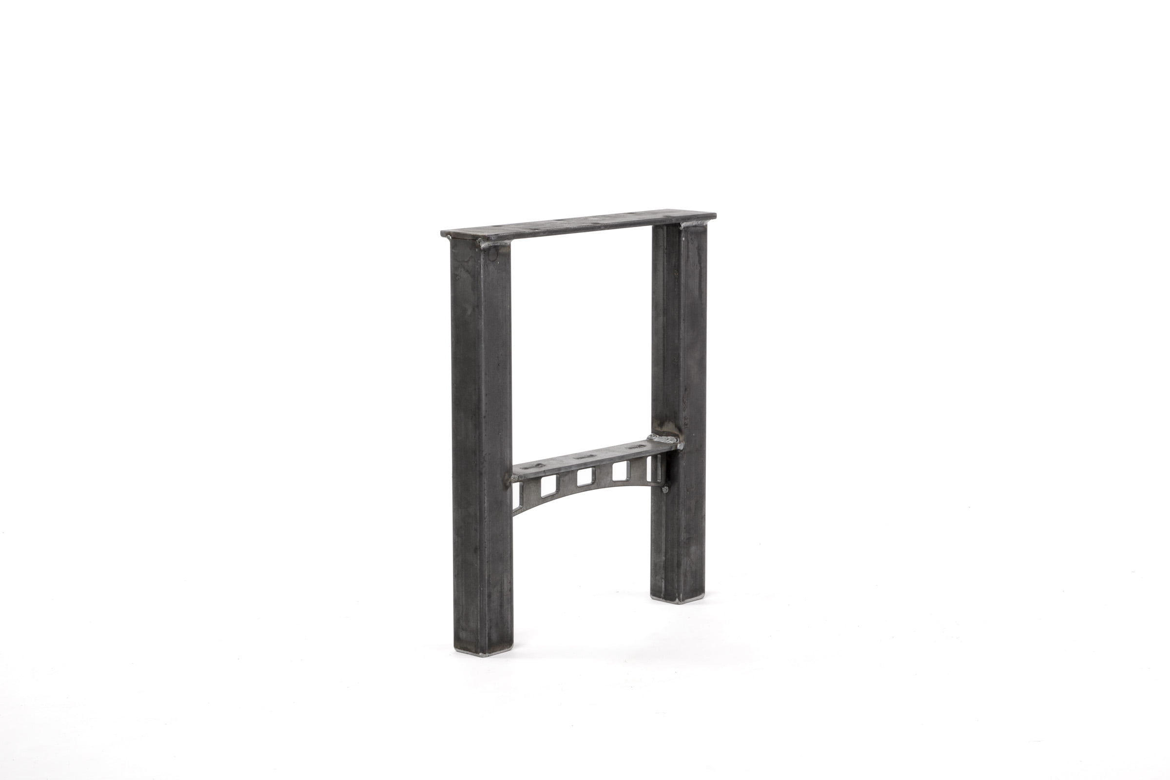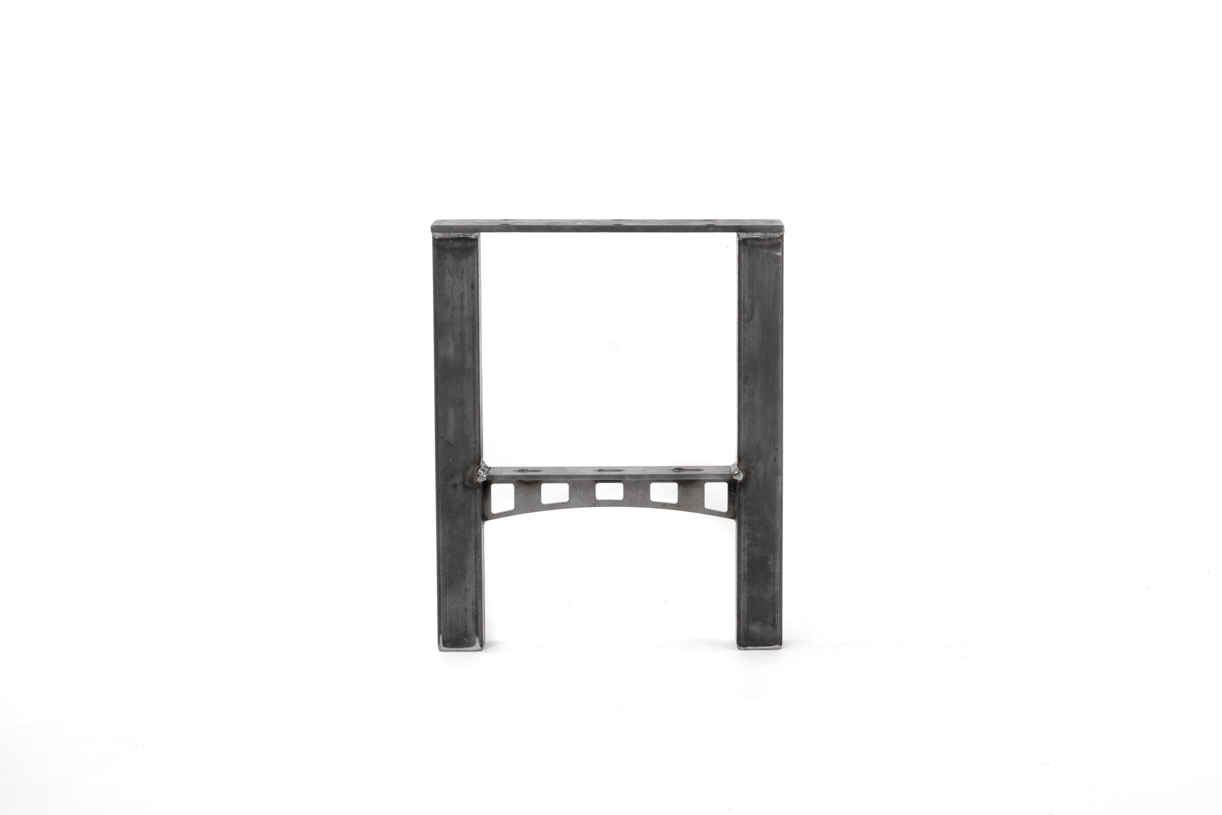 Op zoek naar een moderne tafelpoot? Deze poten zijn een solide basis voor uw houten salon tafelblad of bankje. De stalen poot worden gemaakt van stalen kokers van 5x5cm met ter decoratie een brug detail. Bent u op zoek naar een afwijkende maat/ koker? Neem dan contact met ons op. We bekijken samen wat er mogelijk is. De afmeting van de poot is standaard: 170x60x72cm (LxBxH).