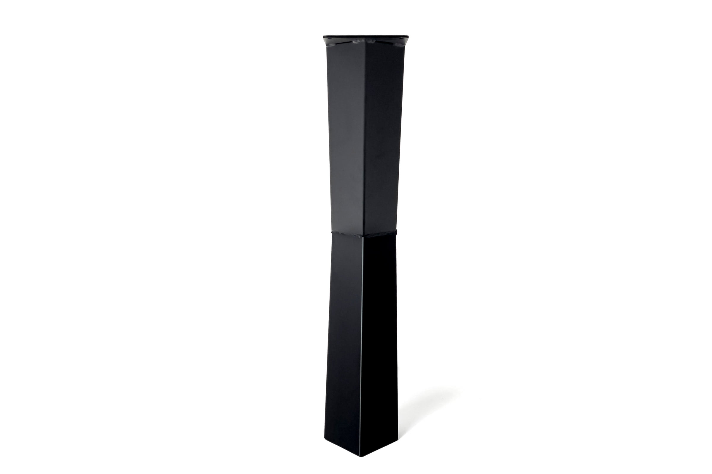 Onze zwart gepoedercoaten diamant X poten met kokers van 10×10 cm zijn standaard voorradig. Alle andere kokers kunnen we binnen +/- 3 weken leveren. Wilt u de poten afhalen in onze showroom? Bel ons dan van tevoren om te informeren naar de voorraad. Zoekt u toch een compleet onderstel met een andere afmeting? Dat is geen probleem, we leveren eigenlijk alles. Neem voor een koker op maat contact met ons op.