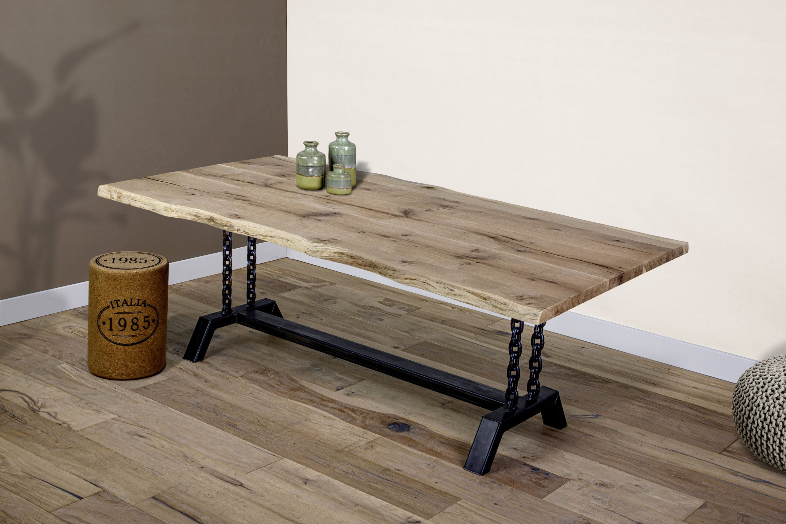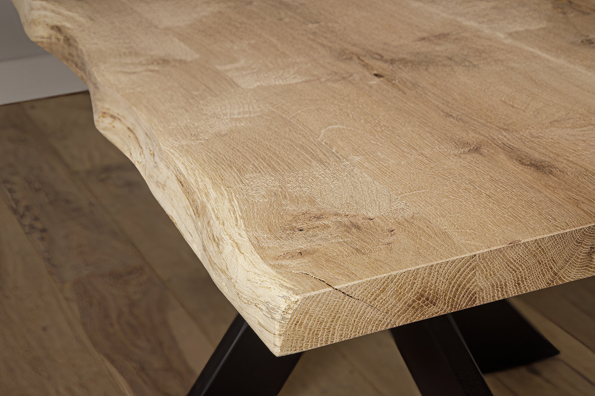 Ook onze grove eiken boomstam tafelbladen kunnen op verschillende manieren worden behandeld, met behoud van het karakteristieke en robuuste uiterlijk.