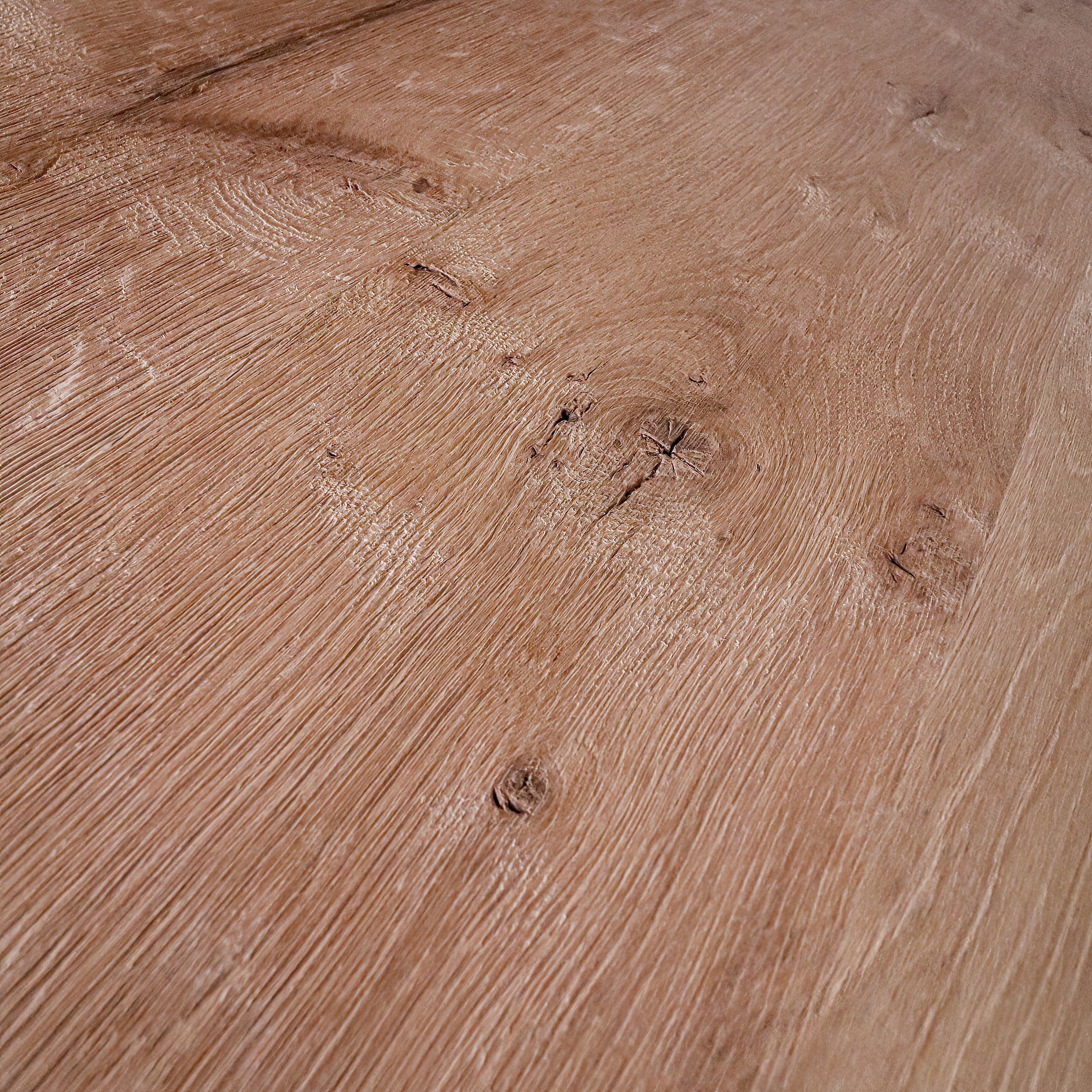 Let op: Omdat het gaat om een grof eiken blad, blijven scheuren, noesten en oneffenheden zichtbaar– ook na behandeling. Dit hoort bij het karakter van het blad.