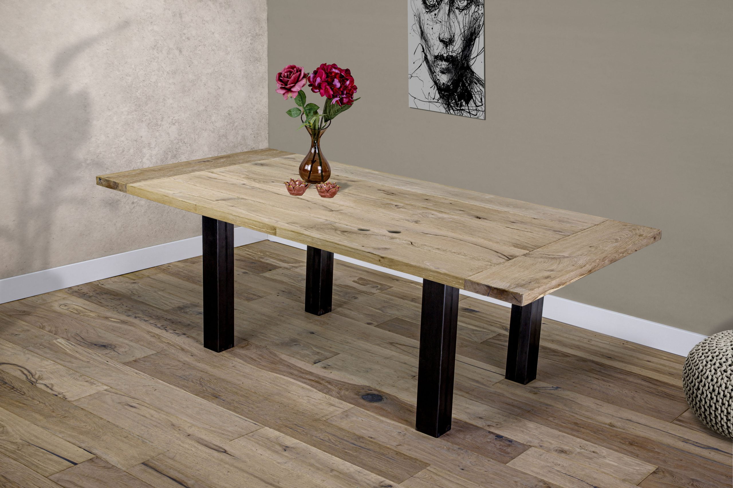 Als u de diverse tafelpoten eerst in het echt wilt bekijken, dan bekijkt u ze in onze showroom aan de Donkerstraat 21 te Harderwijk. Op de contactpagina vindt u onze openingstijden. Hier is het ook mogelijk om het contactformulier in te vullen bij eventuele vragen. Natuurlijk zijn we ook bereikbaar op 036-3030 155 of per e-mail: info@devloerenfabriek.nl.