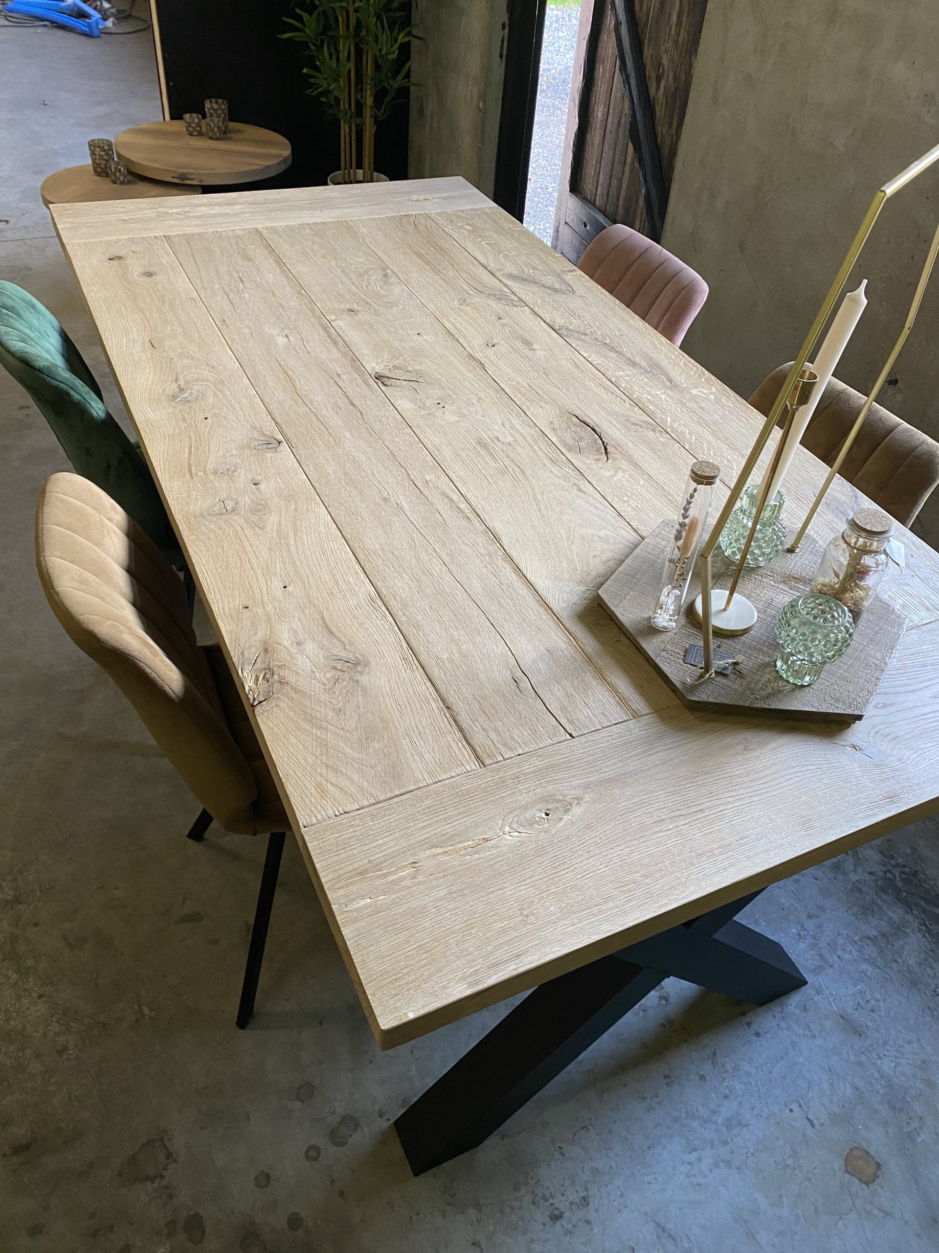 Het is oktober woonmaand bij De VloerenFabriek en daarom zijn onze eiken robuuste tafelbladen in de Sale. In combinatie met onze X poten zwart gepoedercoat K8x8cm en een olie/lak box. U krijgt nu 25% korting op de gehele combinatie! Als dat geen Super Deal is. Wij hebben de bladen en poten op voorraad en kunnen direct worden afgehaald. Wel raden wij u aan om vooraf een belletje te doen voor de actuele voorraad, de actie is zolang de voorraad strekt en door winkel verkopen naast onze webshop kunnen de voorraden op de website soms achterlopen.